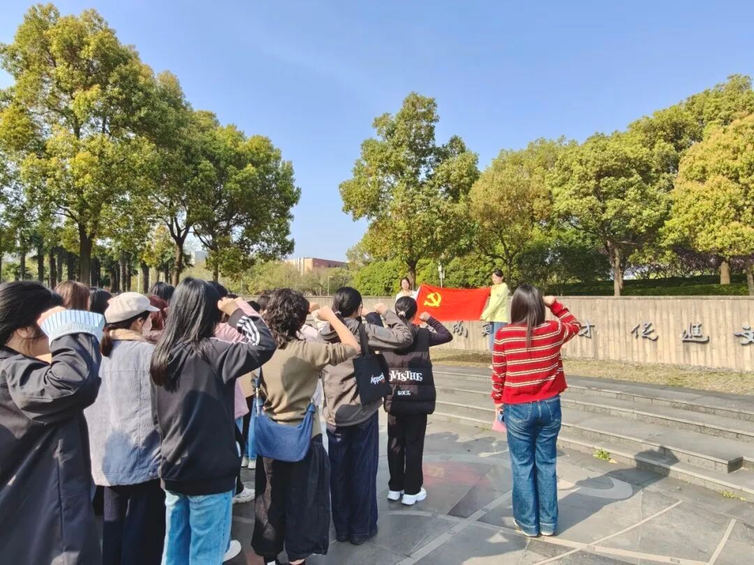 在溯园这一承载着红色记忆的庄严地标前,研究生党员整齐列队,面向鲜红党旗,高举右拳,在院研究生党总支副书记张子桐的带领下,重温入党誓词。铿锵誓言在“红色学府”旧址上空回响,进一步坚定了研究生党员们赓续红色血脉、担当时代使命的信念。