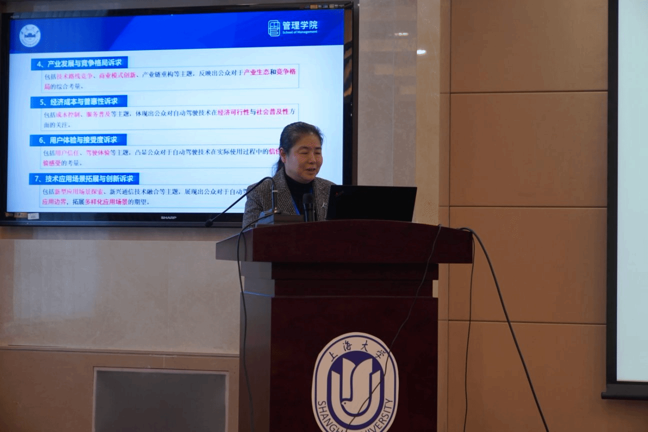 由吉林大学信息管理系主任邓君教授主持,安徽大学管理学院周瑛教授作题为“从社会诉求到政策因应:基于文本挖掘的自动驾驶技术发展策略研究”的主旨报告。通过介绍团队以自动驾驶技术为例,通过构建“社会诉求-政策因应”映射关系分析框架,揭示了公众多维诉求与政策响应的匹配关系,并提出优化自动驾驶技术发展的策略意见。