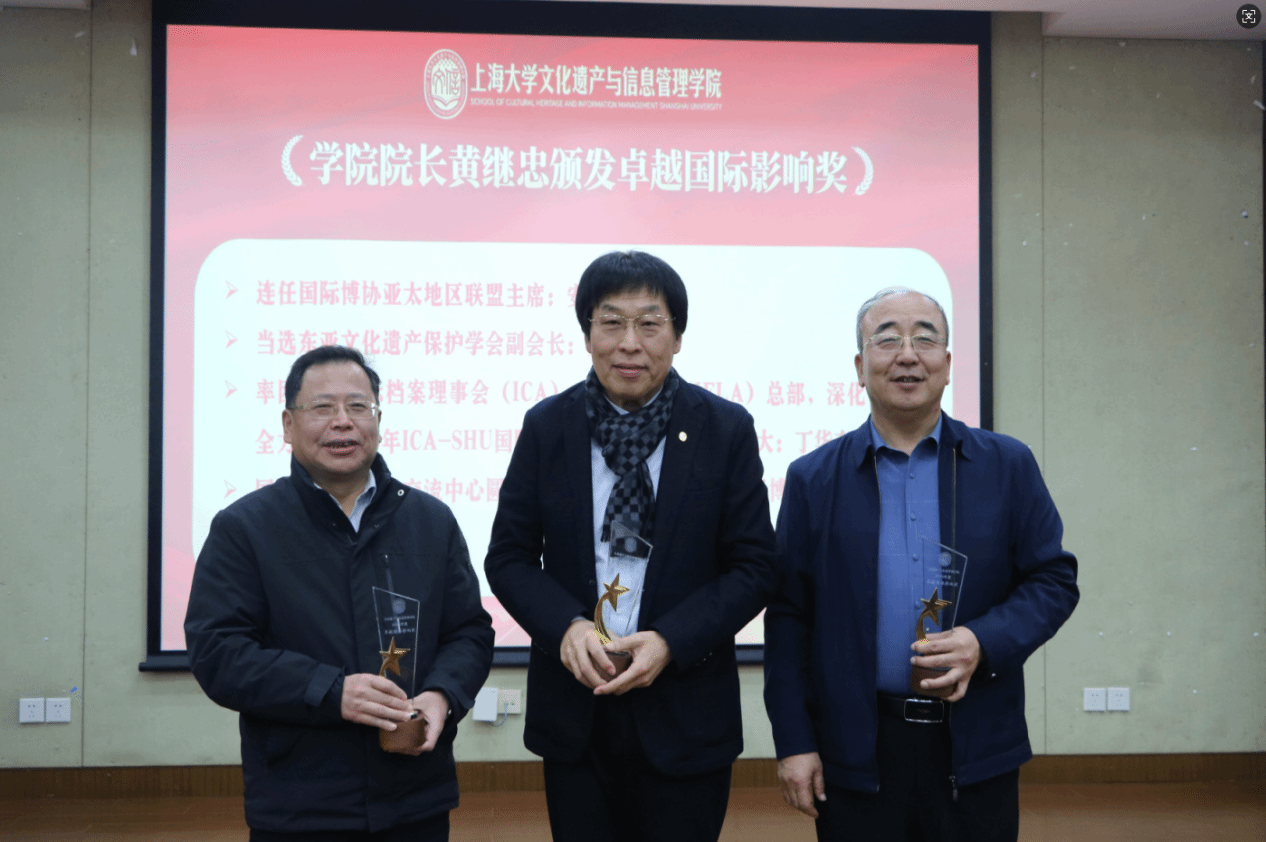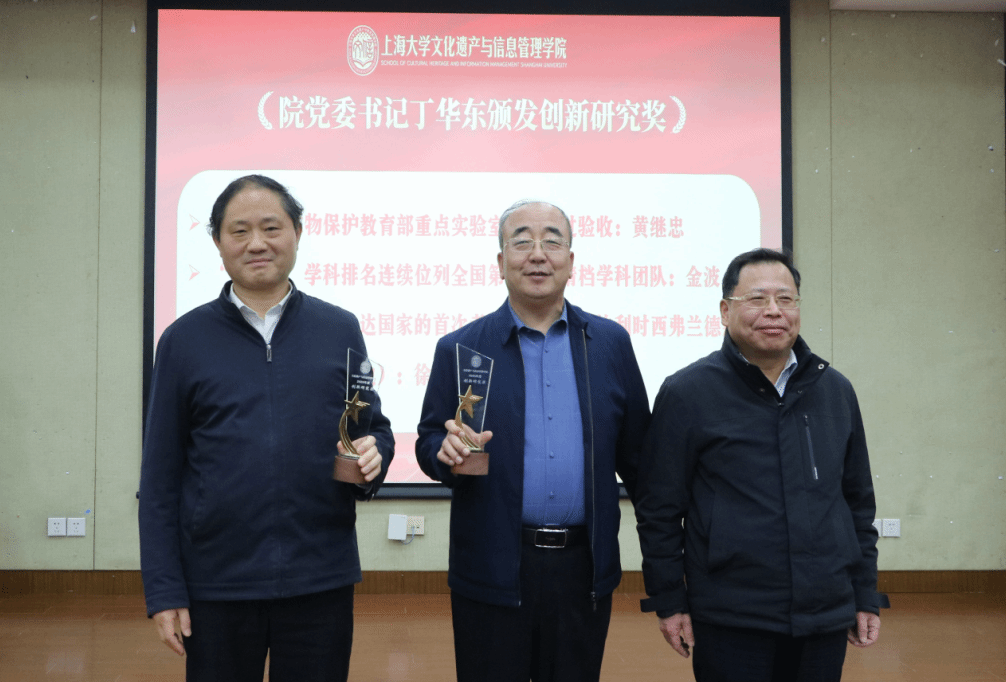 党委书记丁华东为获得“创新研究奖”的团队和个人颁奖。获奖代表在发表感言时表示,这份荣誉既是对过去工作的肯定,更是对未来创新的鞭策,将继续在文化遗产与信息管理领域开拓创新。随后,院长黄继忠颁发“卓越国际影响奖”,表彰在国际交流与合作中作出突出贡献的教职工。获奖教师表示将以此为新起点,进一步提升学院的国际声誉和影响力。