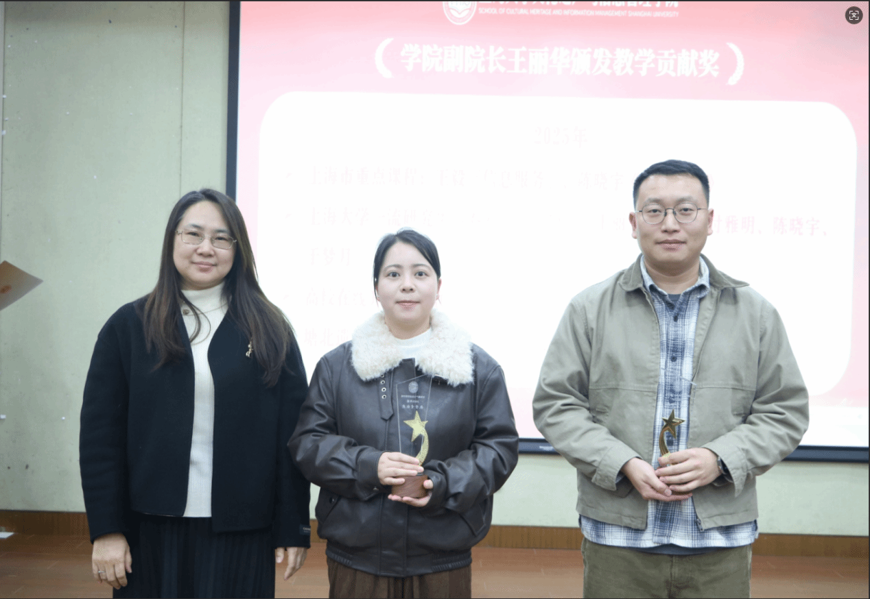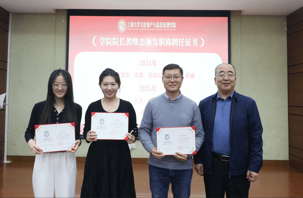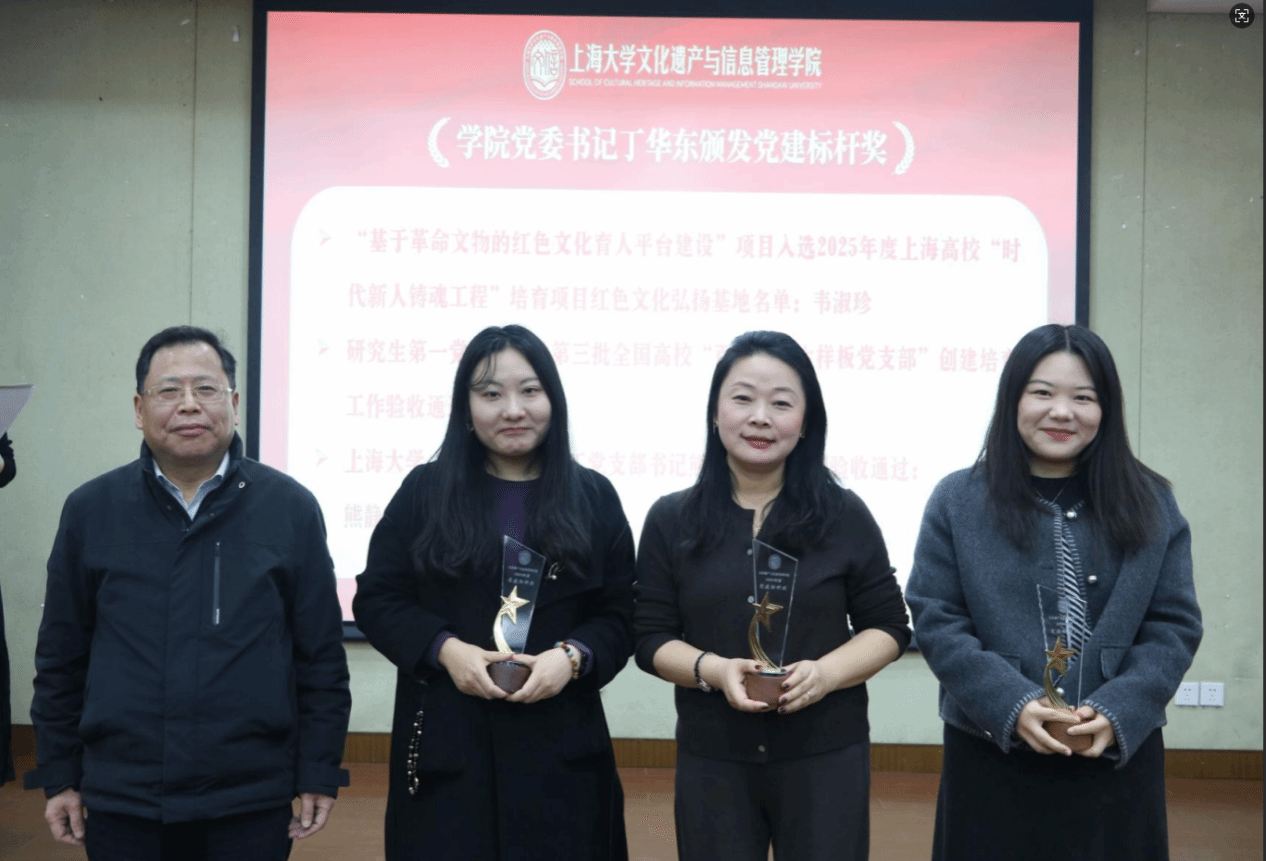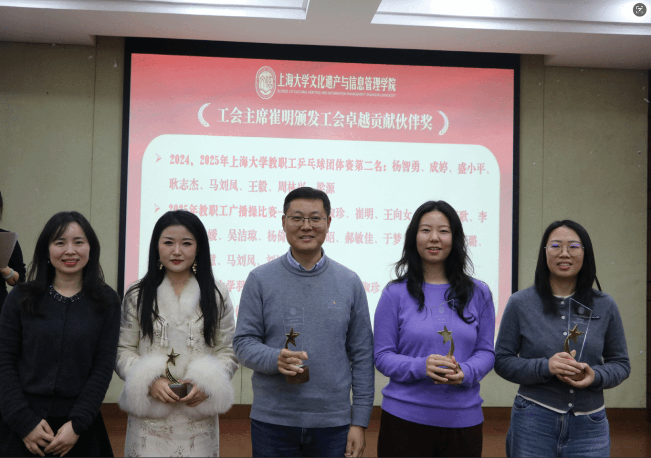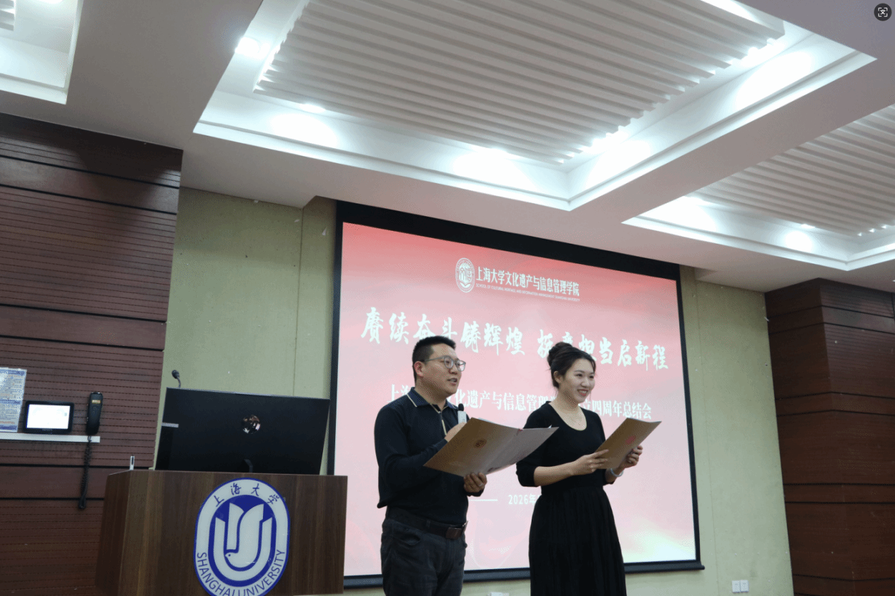 赓续奋斗铸辉煌,挺膺担当启新程。2026年1月15日13:30,上海大学文化遗产与信息管理学院成立四周年总结会暨2025年度总结表彰大会于东区1号楼蔡冠深讲堂举行。学院全体教职工参加大会,会议由挂职副院长、考古学与博物馆学系副教授黄洋与图书情报学系副教授刘运梅共同主持。