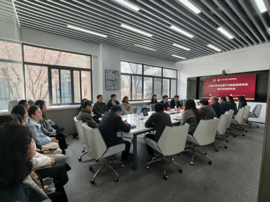 2026年3月25日下午,上海大学文化遗产与信息管理学院在东区4号楼109会议室召开院长任命宣布会。校党委副书记段勇出席会议,会议由学校组织人事部副部长、教师工作处处长张云中主持,学院领导班子成员及全体教职工代表参加会议。