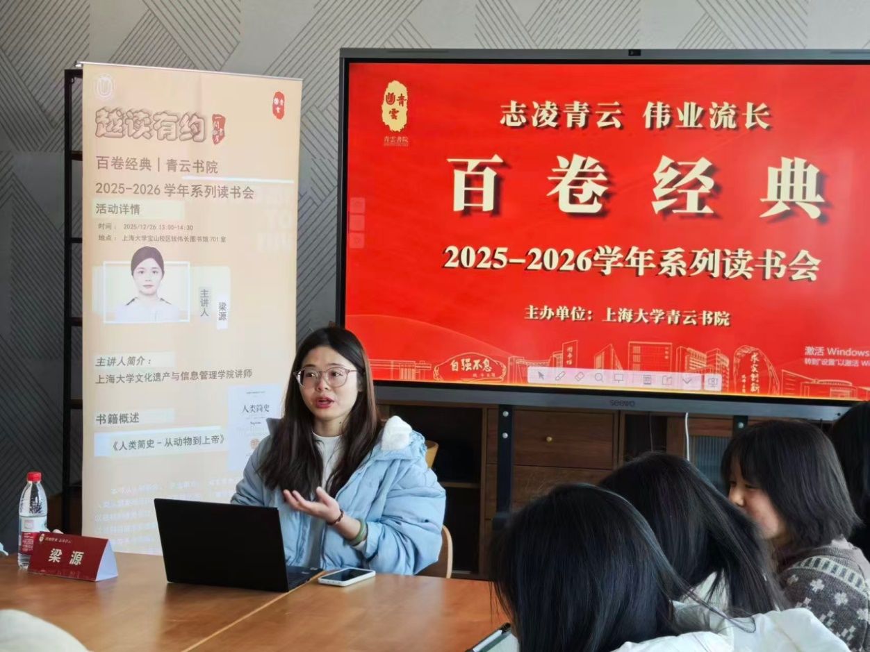 12 月 26 日,2025-2026 学年青云书院百卷经典读书会成功开展。档案学系张衍老师、考古学与博物馆学系梁源老师、文博考古博士研究生赵毓在三个会场同步进行名著导读。张衍老师围绕《斯文不坠 伏典重光:二十世纪初中国古文献四大发现》,系统梳理殷商甲骨文、居延汉简等珍贵史料的现世历程与研究脉络,让学子触摸历史文本温度,培养对近代文献学的研究兴趣。