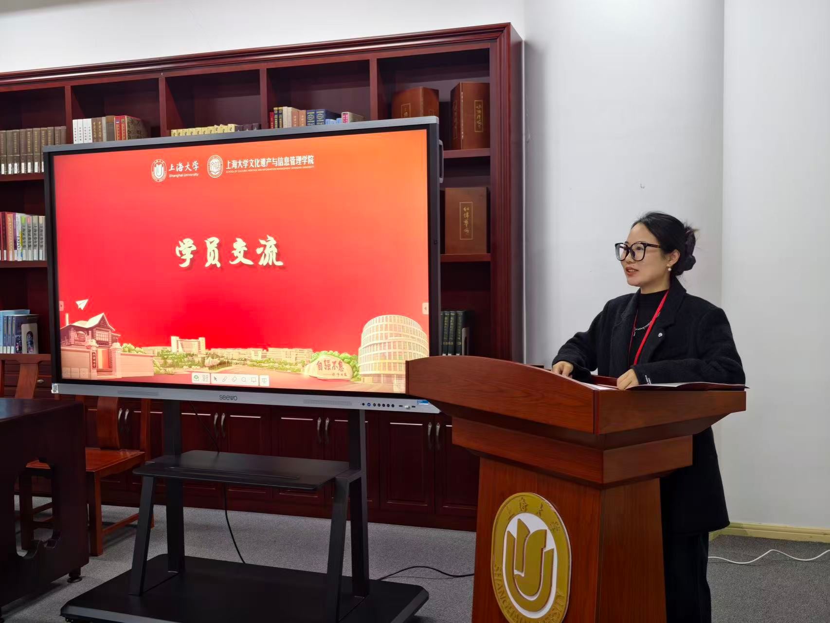 上海大学文化遗产与信息管理学院挂职副院长黄洋作本次学习研讨总体安排介绍。他表示,活动依托学院在革命文物保护、博物馆展陈、口述史采集等领域的学科力量,结合上海丰富的红色资源,精心设计了包括理论授课、现场教学、互动交流在内的多元化学习模块,旨在帮助基层红色文化工作者开阔视野、提升专业素养。