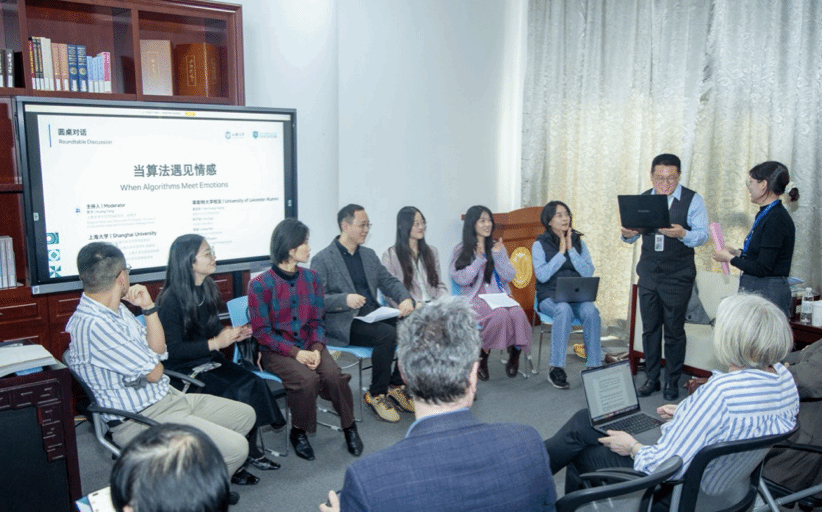 圆桌对话环节以“当算法遇见情感”为主题,由上海大学文信学院副院长黄洋主持。来自上海大学的青年教师与莱斯特大学校友代表围绕人工智能、数字媒介、文化传播与社会参与等议题展开交流。值得关注的是,参加本次沙龙的校友不仅有来自高校的青年学者,还有来自文旅策划、互联网产品研发等不同领域的行业代表,体现了莱斯特大学博物馆学及相关专业人才培养的广泛社会影响,也进一步拓展了本次活动的跨界视野。