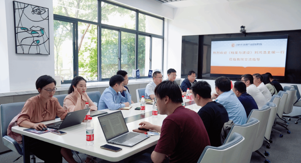 会上,丁华东书记对刘鸿浩一行的到来表示热烈欢迎,并感谢《档案与建设》编辑部多年来对上海大学的大力支持。刘鸿浩介绍了《档案与建设》期刊近年来的建设和发展情况,期刊的定位、主要栏目、近期选题以及近5年来的有关文章发表情况,并重点介绍了今年新开设的“强档论坛”栏目举办情况。接下来,周林兴、丁敬达、杨智勇、耿志杰、杨光等教师和杨鹏等博士研究生分别就《档案与建设》期刊发展、栏目建设、与作者间的互动及编辑队伍建设等方面进行了发言和讨论;张帆编辑针对在场博士研究生就论文写作和投稿等问题进行了解答。刘鸿浩指出,《档案与建设》立足江苏、面向全国,希望能够通过与周边高校档案专业的广泛合作,繁荣长三角档案学术圈,打造刊校互利共赢、协同发展的良好局面。