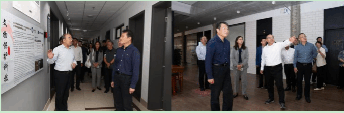 考察组考察上海大学文化遗产保护基础科学研究院硅酸盐质文物保护教育部重点实验室建设情况与革命文物协同研究中心徐汇办公点,察看实验室设施建设及相关工作开展情况,在考察过程中,对建设情况给予了高度评价。