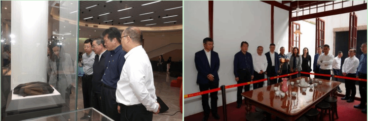 考察组瞻仰中共一大会址,参观中共一大纪念馆及中共一大纪念馆“百物进百校”系列活动中进入上海大学博物馆展陈的16件文物。