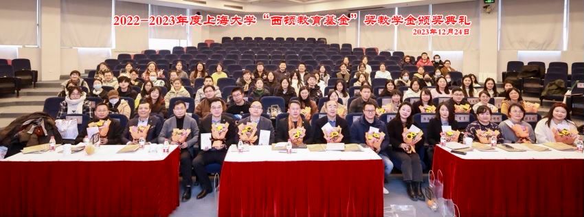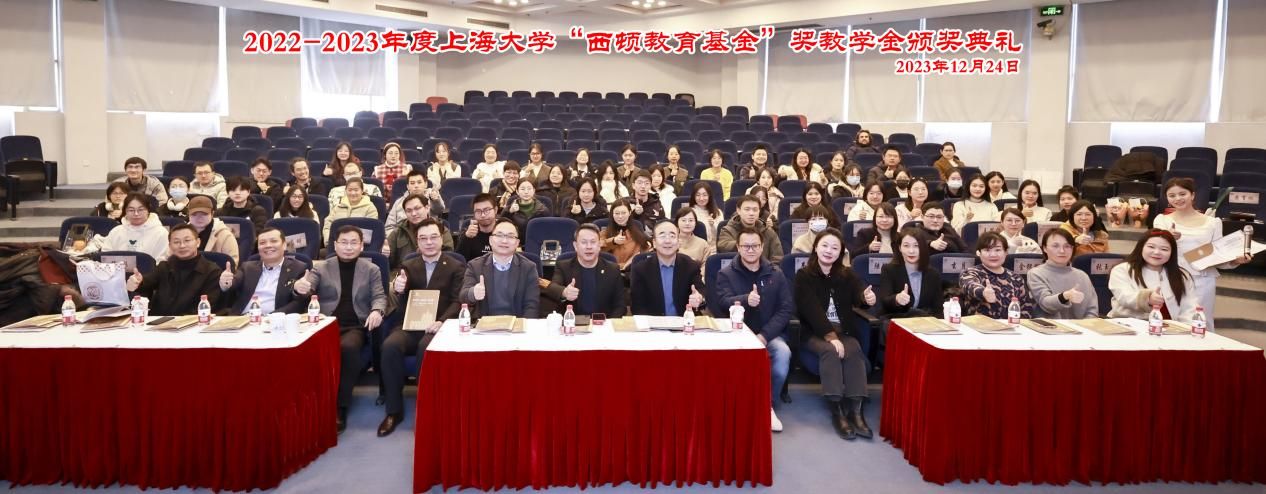 12月24日下午,2022-2023年度上海大学“西顿教育基金”奖教学金颁奖典礼在宝山校区行政楼报告厅隆重举行。西顿工业国内市场系统高级总监徐长财,西顿工业玛雅照明总监张鹏,西顿工业市场中心总监谭君,西顿工业玛雅照明专业发展总监施聪,西顿品牌推广经理陆治琴,上海大学对外联络处处长、教育发展基金会秘书长陈然,上海大学文化遗产与信息管理学院院长黄继忠,上海美术学院副院长王海松,上海大学文化遗产与信息管理学院党委副书记、副院长韦淑珍,学院院办主任玄月,学院团委书记金银银,学院团委副书记张玉昭等嘉宾和师生代表出席典礼。本次颁奖典礼由21级考古学本科生郭春兰主持。