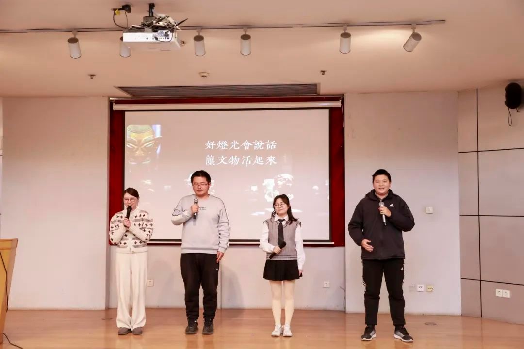 在颁奖典礼的最后环节,学院考古学与博物馆学系青年教师王思怡、22级硕士研究生吴昊、22级考古学本科生徐明钰、杨智果带来诗朗诵《感谢》,表达对学校和西顿教育基金会的感激之情。