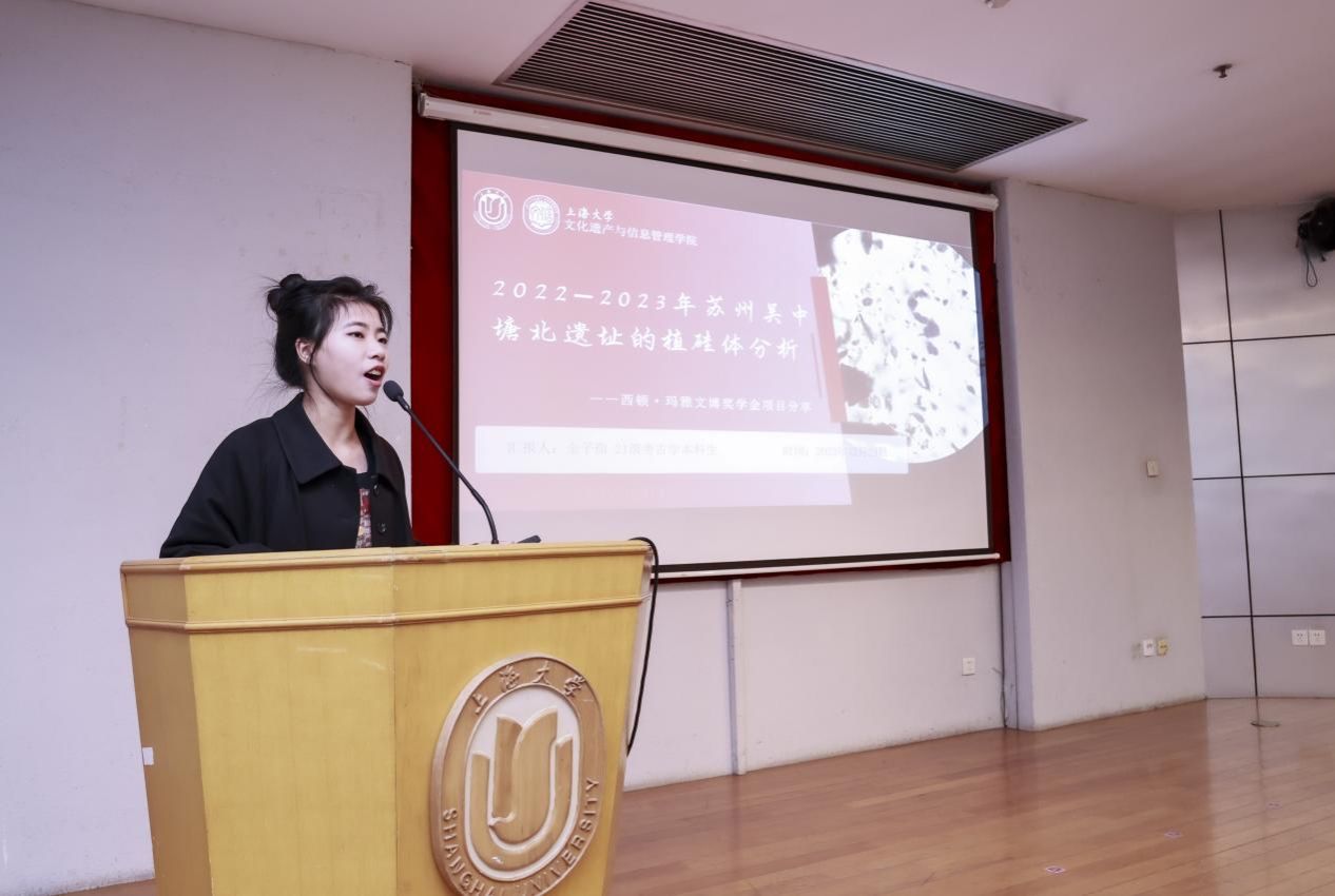四位获奖师生代表分别带来他们精彩的课题成果分享。2021级考古学专业本科生金子微用手铲拨开千年的迷雾,去田野探寻历史的谜底,用科学的手段探赜古史,以人文的笔触刻写文明。