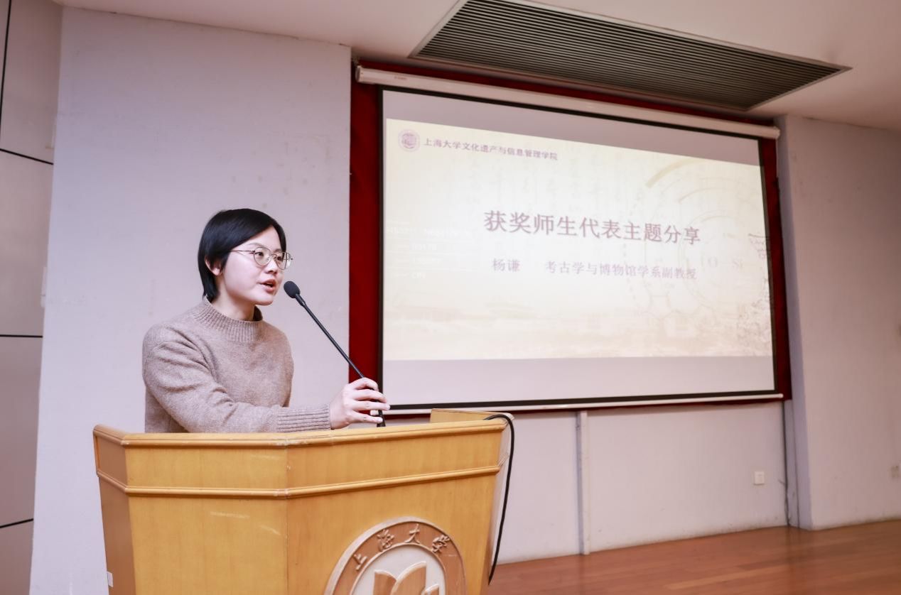 现场播放2022-2023 年度上海大学“西顿教育基金”奖教学金教师获奖者与学生获奖者风采视频,这些获得荣誉的师生都是学院考古与文博系中作出突出贡献的优秀教师和品学兼优的在校学生。在他们身上,生动体现了文信考古文博人求知求真、久久为功的责任担当。视频中他们的优秀成果一一呈现,赢得了现场观众的阵阵掌声。