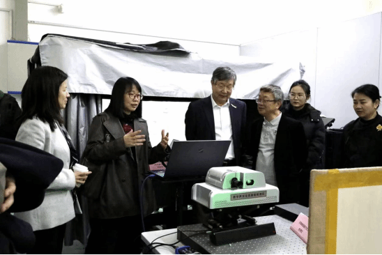 专家组随后前往实验室科研平台,实地考察了硅酸盐质文物科学认知研究中心、劣化机理研究中心、保护材料与技术研究中心等科研场所及设备平台建设情况。